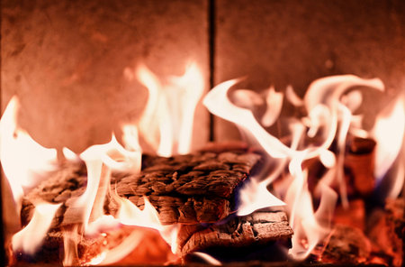 briquettes burn in the fireplace