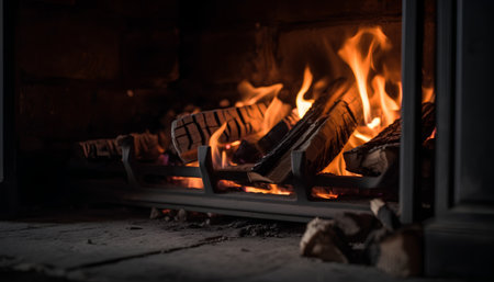 A captivating image of a cozy indoor fireplace, featuring dancing flames and a rustic environment that promotes warmth, comfort, and tranquility in a home setting.