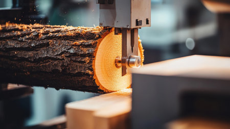 Modern sawmill machinery in action, cutting wood efficiently
