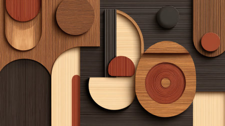 A captivating abstract composition featuring diverse wood pieces in various shapes and textures, perfect for modern design inspiration and artistic projects.