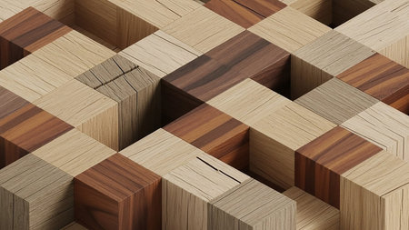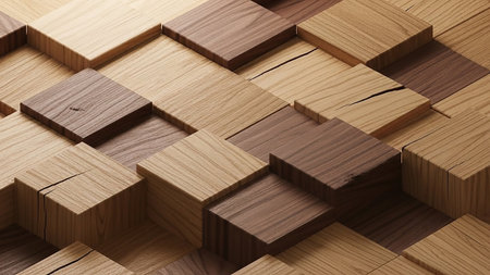 Captivating close-up image featuring wooden cubes of varying textures and colors, perfect for design projects related to home d