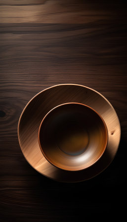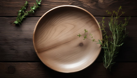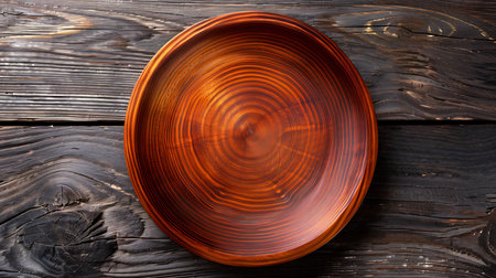 Close-up view of a handcrafted timber plate, with a focus on its rustic texture and hand-finished charm.. AI generated.