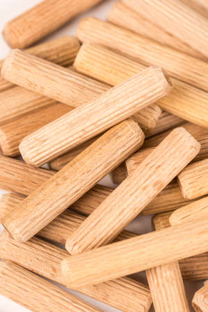 Wooden dowels for the Assembly of furniture, background.