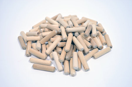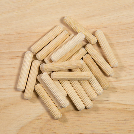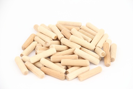 Wooden pins for furniture isolated on white