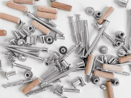 assorted screws for furniture assembly on the wooden table