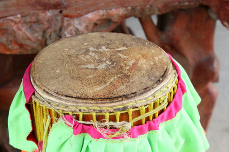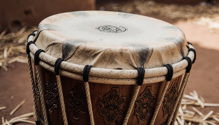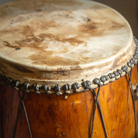 The weathered hide of an ancient drum tells a story of countless rhythms and ceremonies.