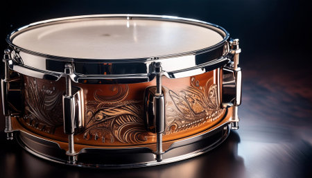 close up of a snare drum showcasing its glossy finish and intricate design
