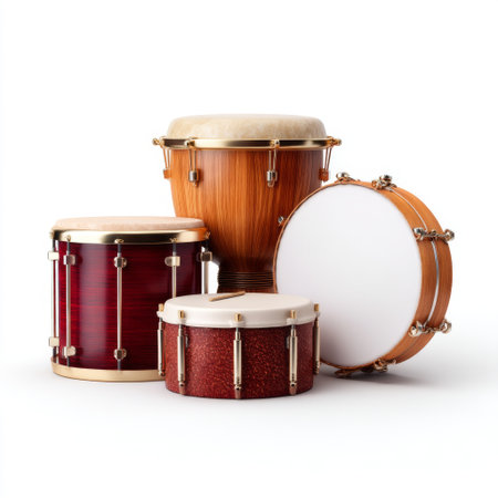 A vibrant collection of assorted drums showcasing diverse textures and colors. Perfect for music projects, educational materials, or creative inspiration.
