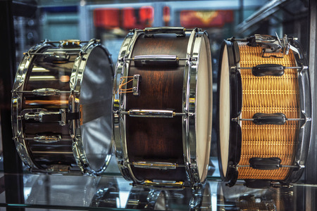 musical showcase with drums in row