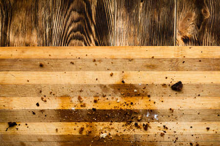CloseUp View of Tiny Crumbs Scattered Across a Wooden Kitchen Surface