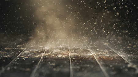 Dust particles sprayed by the wind. Sand on the ground or dust on the floor. Generative AI