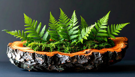 Perfect natural young fern leaves pattern background. Dark and moody feel. Top view. Copy-space.