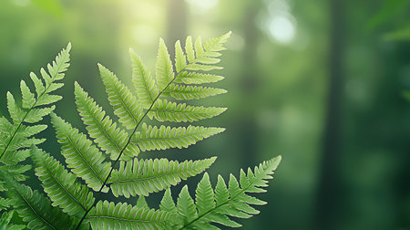 Beautiful green fern leaf in sunlight, selective focus. Natural floral fern background.