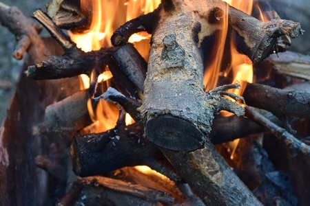 Image of burning wood,fire in the woods, hiking