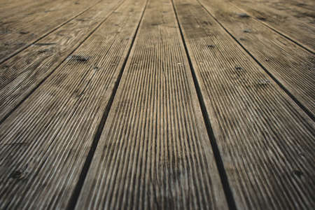 Detail of slats of a wooden terrace. visible ridges on wooden boards used to make terrace floor.