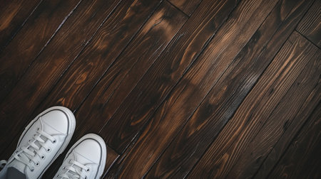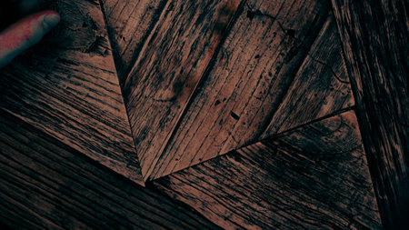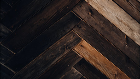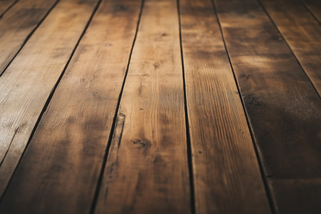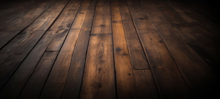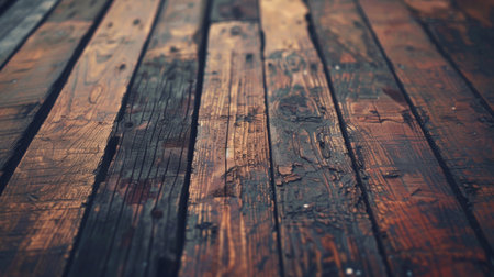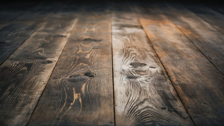 Old dark vintage grunge weathered wooden floor planks, close up background texture, high angle view, diminishing personal perspective, AI generated