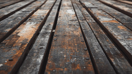 Close up of weathered wooden planks with visible grain and texture, perfect for backgrounds.