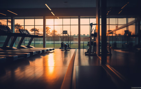 Blurred effect with copy space against equipment in an empty gym. gym fitness and sport concept