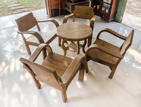 Wooden furniture as patio decoration and home decor