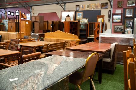 Wide selection of dining and coffee tables in modern furniture shop