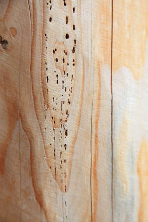 damaged wood texture eaten by bark beetle, borer