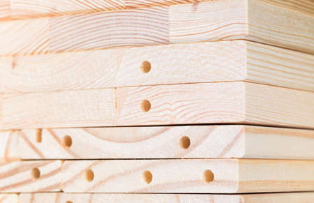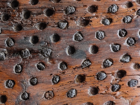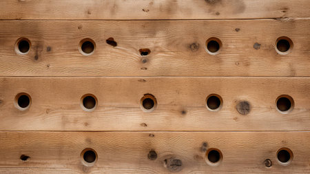 Beautiful wooden planks with drilled holes photographed