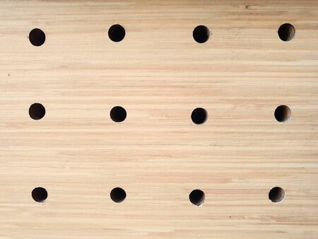 holes abstract background of a wooden brown yellowish wall hanger