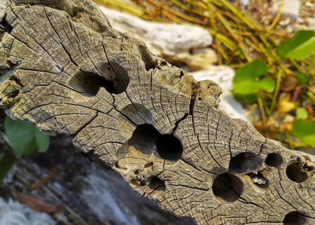 Close up of dead wood with holes