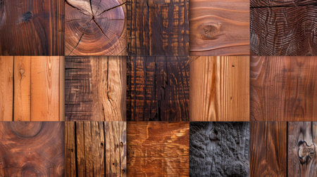 This image showcases a diverse collection of wood textures, highlighting the unique grains and rich colors found in natural wood surfaces, ideal for design projects.