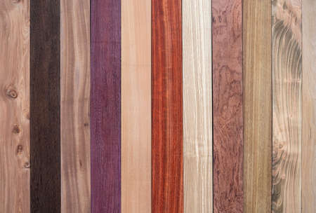 Close-up of multiple rows of different wood flooring samples displayed in an advertising display, showcasing the variety and quality of materials used for home installations. The image has a full depth of field in focus, an f-stop of 8.0, sharp details, and a neutral background. --ar 73:30 --stylize 750 --v 6.1 Job ID: 623995d0-4c66-45f3-9067-bd0dda5f647e