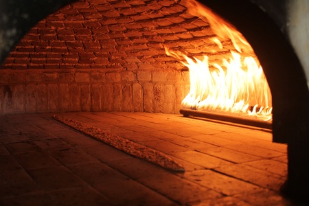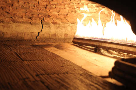 Fire and burn coals in stone ovens. Oven made of brick and clay on the wood. Oven for pizza. Brick oven.