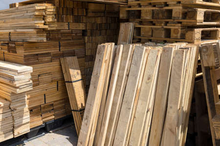 Wooden planks from old pallets waiting to be sold , Can be used as a background