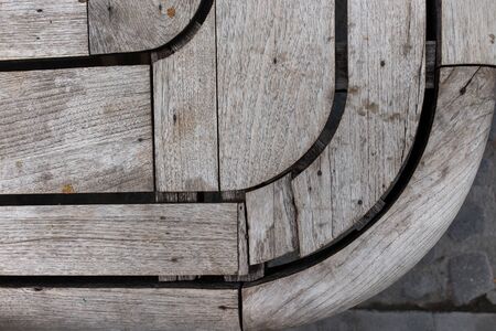 Handmade furniture made of wooden boards. Idea for landscaping the garden and backyard