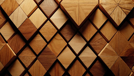 A seamless pattern of wooden squares, each with its own unique grain and texture, arranged in an aesthetically pleasing composition for wall decoration. SEAMLESS PATTERN.