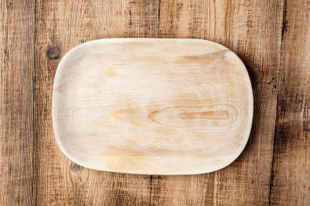 Empty wooden dish on the wooden background