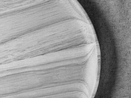Wood plate on fabric, monotone color background