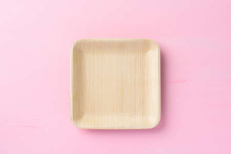 Betel palm leaf plate (Biodegradable plate, Compostable plate or Eco friendly disposable plate) on pink background