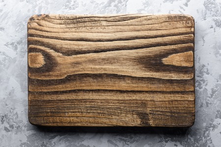 Old oak wood board on rustic concrete table. Food photography