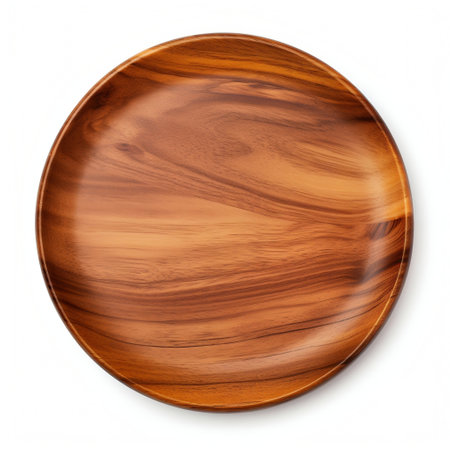 Top View of Wooden Circle Plate Isolated. Generative AI. High quality illustration