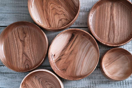 Empty wooden plate with the soft wood background. can be use for kitchen concept.
