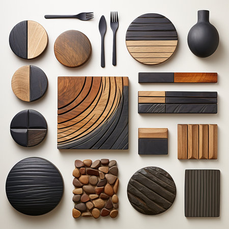 AI generated image - interior design material moodboard with natural materials combined with black colors