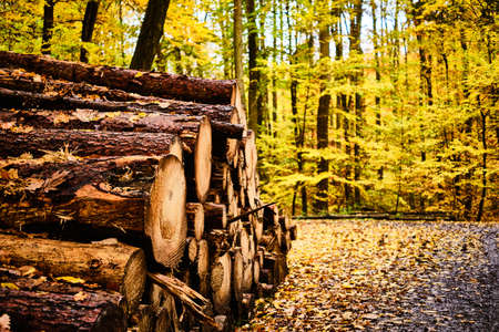 Logs in forest near Jevany near Prague in Autumn, Czech republic