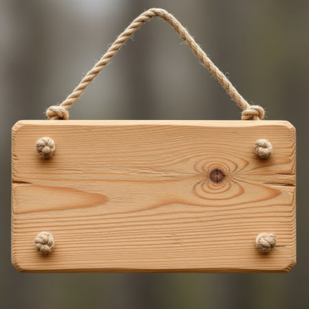 Blank wooden sign hanging in forest