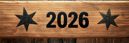 Rustic 2026 New Year Celebration with Wooden Background, Country Decor, and Starry Elements