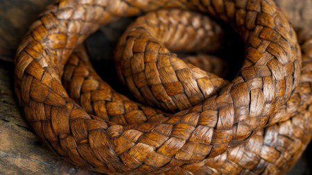 This close-up image showcases a tightly coiled natural rope with intricate textures and rich brown tones, perfect for nature and craftsmanship themes.