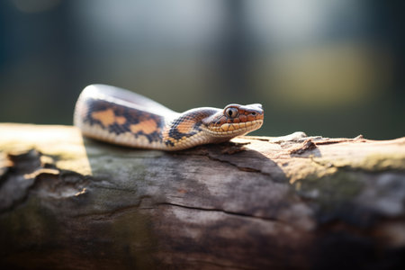 closeup of python on tree with blurred background. generative ai