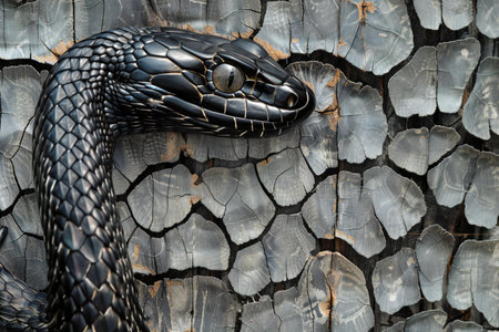 An AI generated illustration of a reptilian snake atop a rocky surface