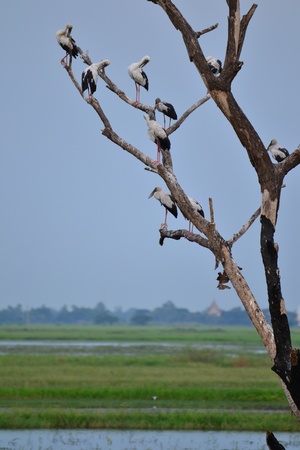 Asian openbill in wetlands Thale Noi, one of the country's largest wetlands covering Phatthalung, Nakhon Si Thammarat and Songkhla ,South of THAILAND.