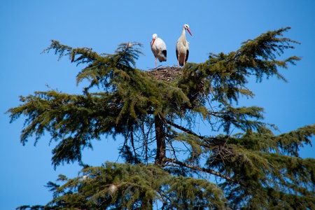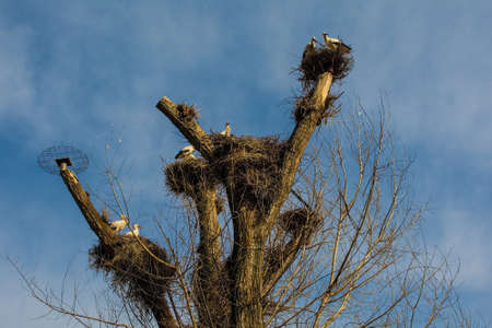 roost of white stork (Ciconia ciconia) where the specimens gather to form a colony. Spain