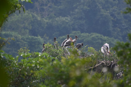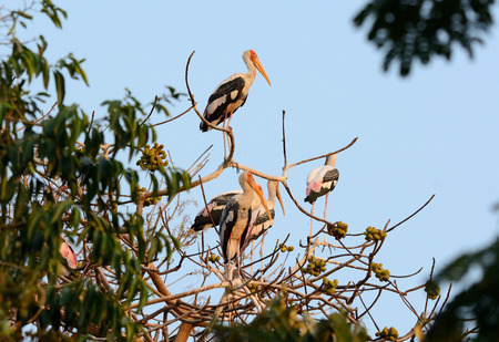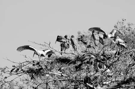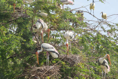 breeding colony of Painted Stork (Mycteria leucocephala) in forest
